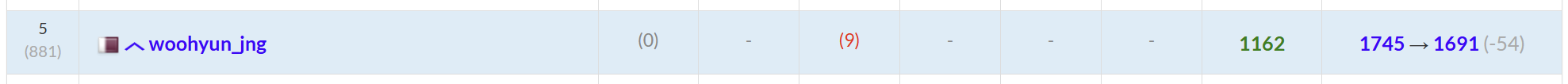B에서 뻘짓을 하고 C2, D를 빠르게 풀었습니다. 그리고 E에서 2시간가량 고민하다가 파이썬으로 나이브를 돌리고 계차를 잘해서 OEIS에 넣었더니 나와서 풀었습니다…. ㅋㅋㅋ 오렌지 하위 퍼포가 나오고 아쉽게도 오렌지는 못 갔습니다..