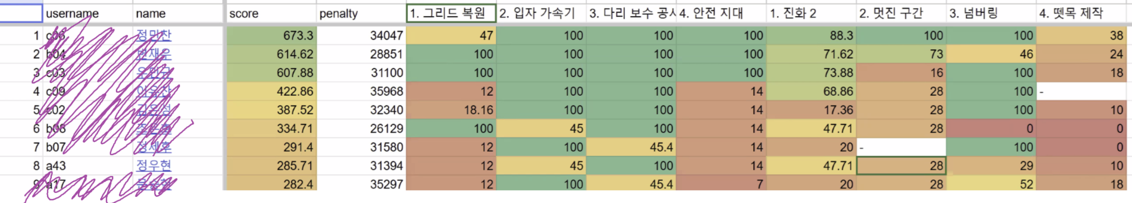 각 문제에서 47.71, 28, 29, 10점을 받아서 2차 7등, 전체 8등을 했습니다. 최종 10등 안에 들었기 때문에 상당히 만족스럽습니다. 제가 긁을 수 있는 문제는 모두 다 긁은 것 같아서 더 만족스럽습니다. 처음반 중에서 1등이기 때문에 목표했던 계속반은 사실상 확정이고 내년 선발고사에서는 더 잘 볼 수 있도록 노력해 보겠습니다. 히히