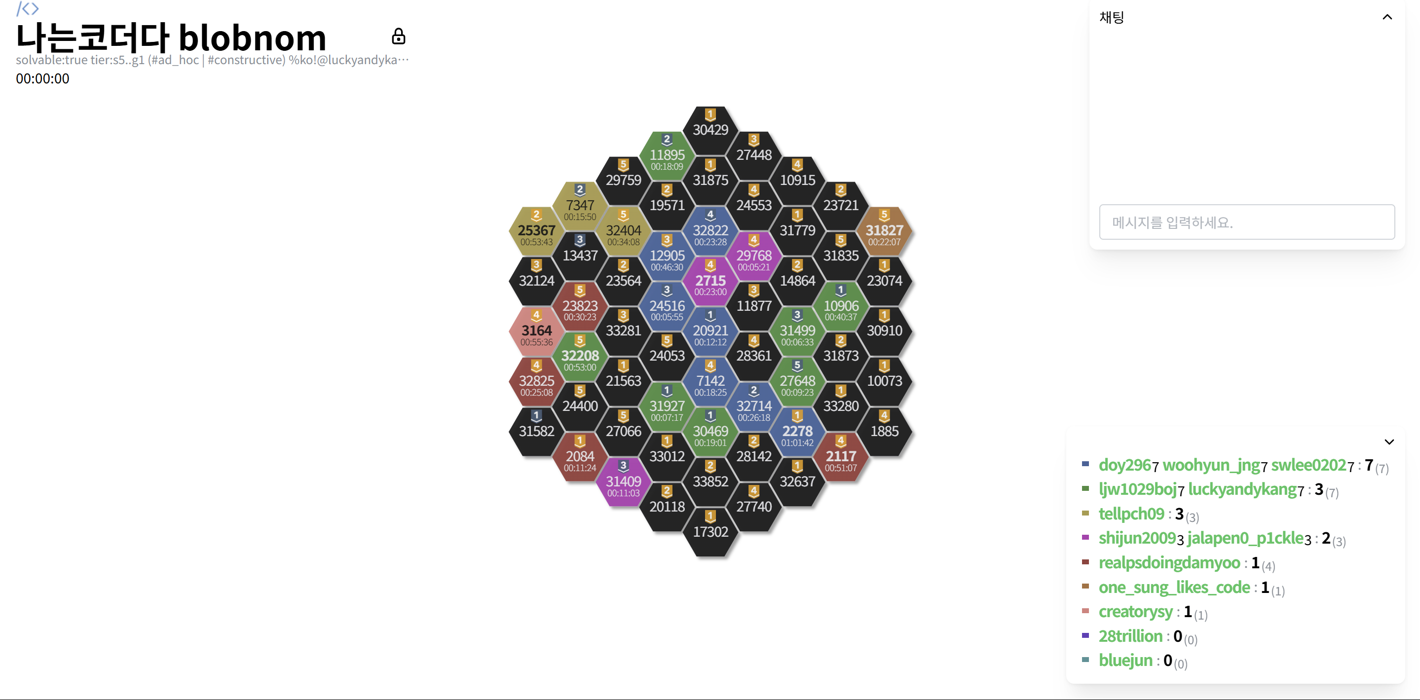 나코더 시간에 realpsdoingdamyoo가 애드혹 강의를 했고 시간이 많이 남아서 애드혹 땅따먹기를 했어요!!