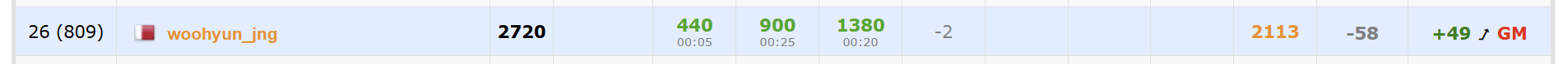 H 풀이를 빨리 찾고도 구현과 디버깅에 2시간이라는 많은 시간을 쏟은 점, 쉬운 문제에서 쓸데없는 WA를 낸 점에서 풀이를 최대한 구체화한 뒤 구현하는 게 필요해 보입니다!!